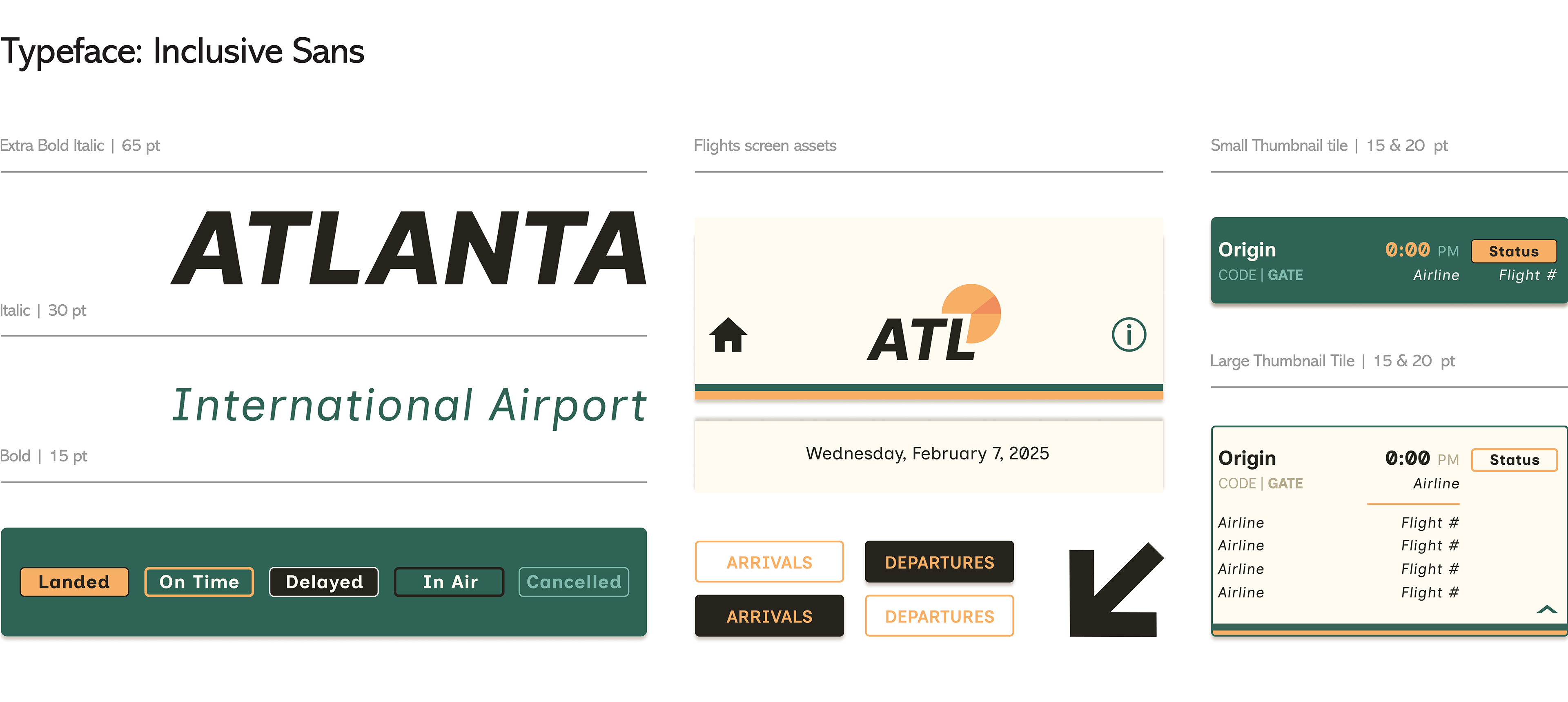 Only sans-serif typefaces were considered, as they're more readable on small iPhone screens. A clean typeface is essential for quickly scanning important information, like flight details. The one I went with was Inclusive Sans for its clearer numbers.