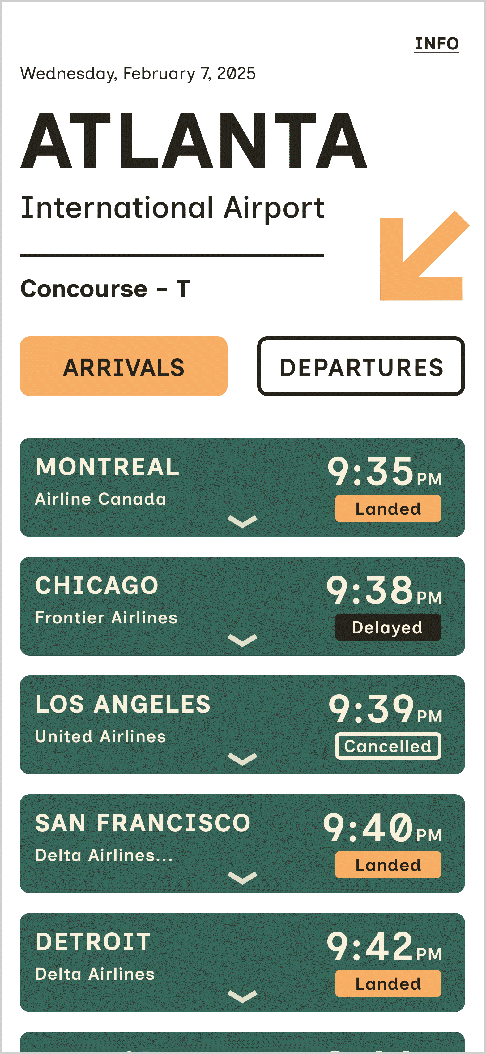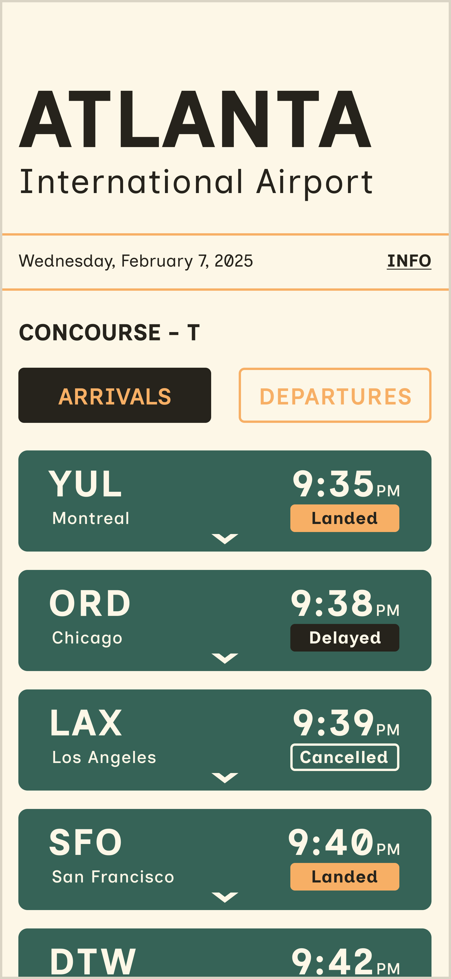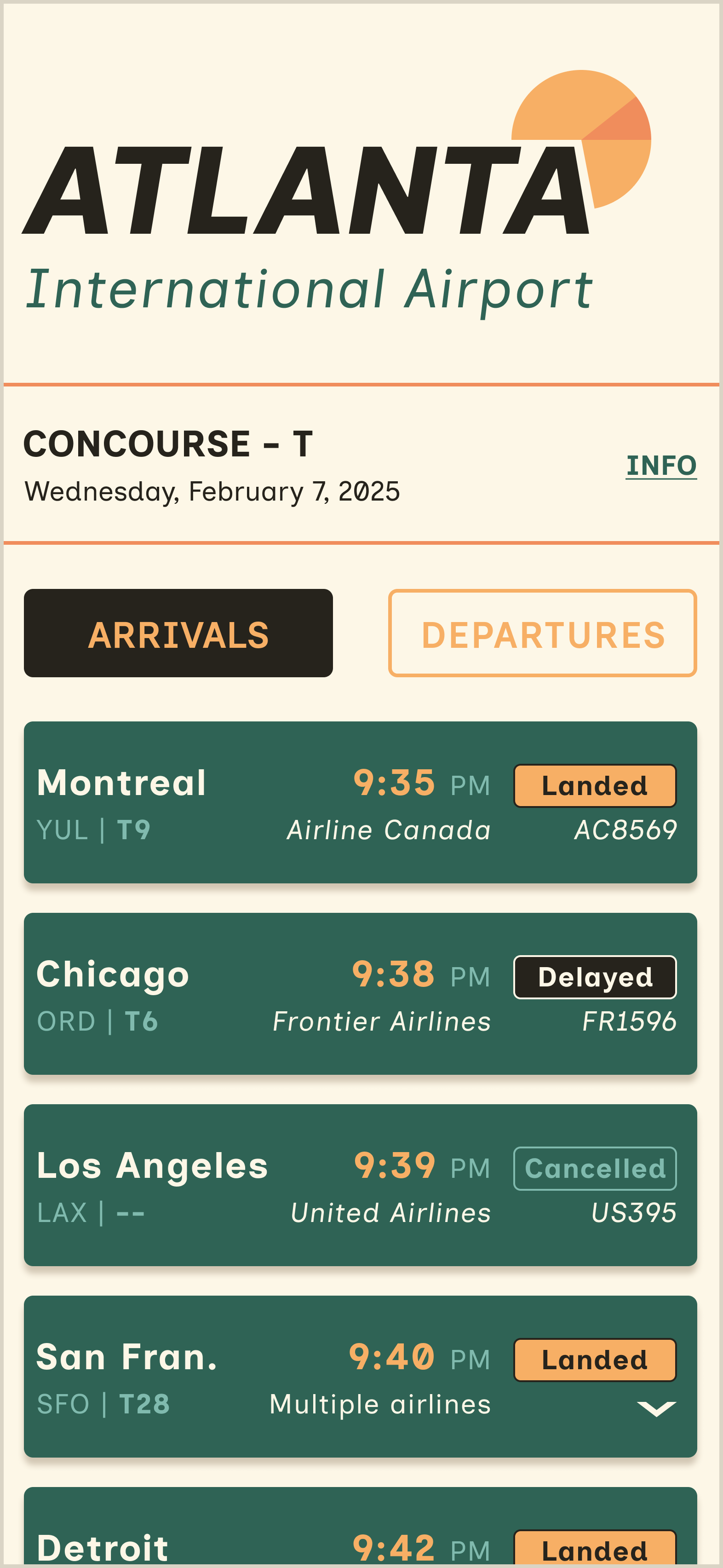 This project involves developing a user-friendly flight information display system for Hartsfield-Jackson Atlanta International Airport, optimized for the iPhone 14 Pro. The primary goal is to create a clear typographic layout and effective information structure, improving the travel experience for both seasoned and novice travelers.