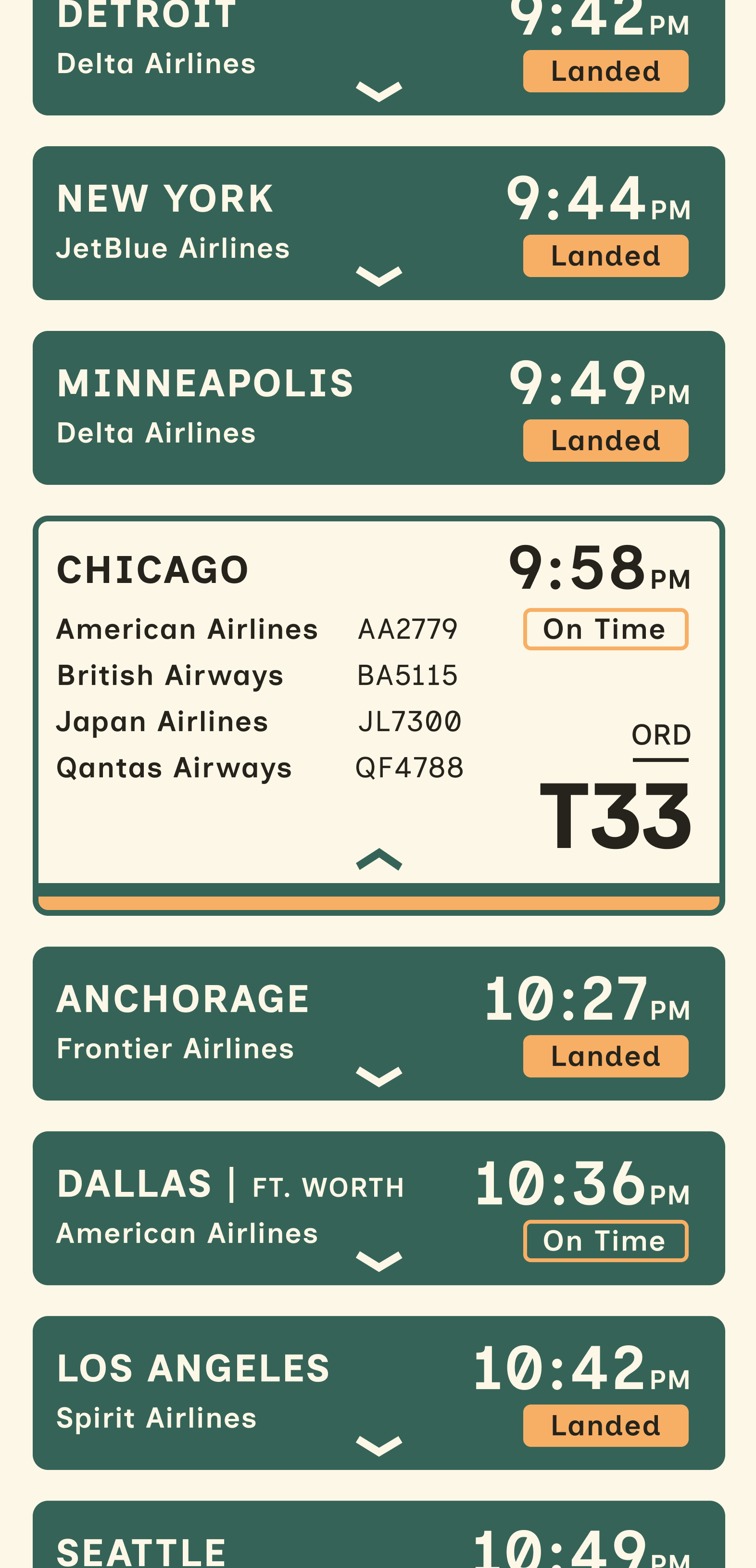 Designing a clear and organized expanded tile required multiple iterations. Ultimately, I decided to include expanded tiles only for flights with multiple airlines to avoid an overwhelming appearance.