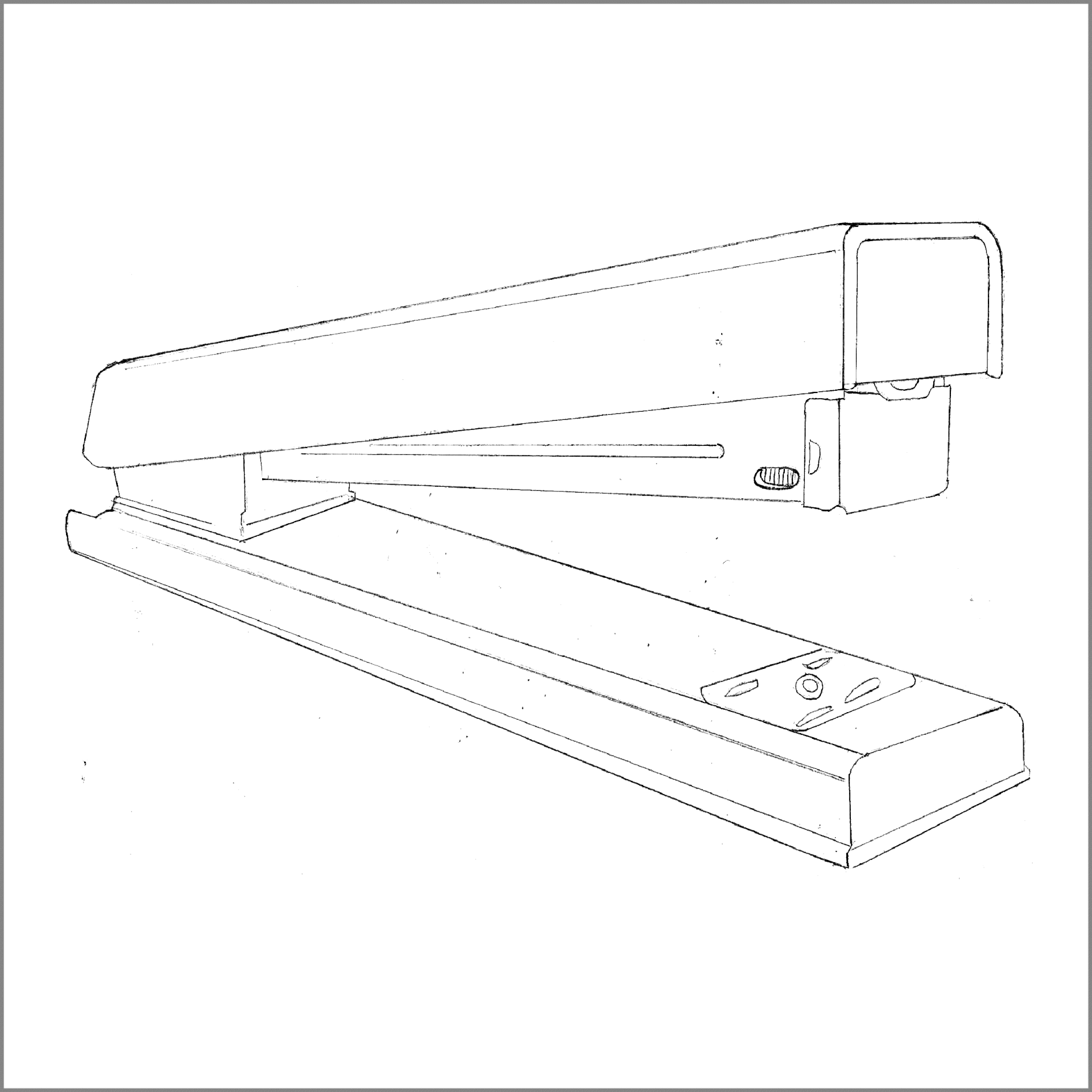 The process of transforming a traditionally drawn stapler into a simplified icon.